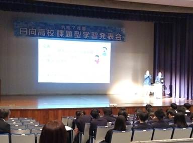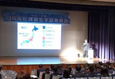 本日午前中、中央公民館で行われた日向高校フロンティア科2年生による課題型学習最終発表会に参加してきました。午前中は個人発表で5名の生徒が発表しました。「粘菌」や「睡眠」、「教育」、「大判焼き」、「生理」というカテゴリーでそれぞれが調べた学習を舞台上で堂々とプレゼンしました。テーマ設定の背景や研究の目的、仮説、調査方法、結果、考察と、おおよその研究の流れに沿った発表がありました。そもそもの課題については、本日参加しただけでは、どのような過程を経て設定され、仮説から調査方法の範囲決定などの経緯は見えませんが、自分の興味ある課題を設定したのだということは発表から感じ取れました。それぞれが集めるデータ範囲の妥当性やデータ結果の有意性などへ、今後繋げていけそうな数値結果も見られましたので、今後の研究が楽しみです。
