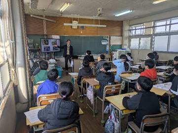 先週15日(木)財光寺南小学校5年生を対象に、よのなか教室の事前学習を行いました。その前日に富高小学校で行った授業と同じ内容になります。今度は、5年生2学級に1コマずつ授業を行う形態で実施しました。