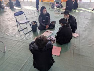 次のラウンドになると、班の次の生徒1名が講師と1対1対話をすることになります。ほかの生徒は紙芝居へ行き、同じようにして3ラウンドまで進みます。長い時間になるので、途中に休憩時間や飲水タイムを設けたりして体調にも配慮されていました。