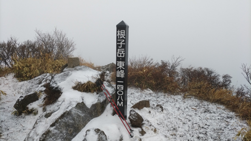 人間も常に最新の状態にアップデートせよということなのですね。深いです。私事ですが、新たに仕事を始めると、週末は体の疲労回復のために過ごすようになり山から遠ざかっていました。それで一念発起し先週末に阿蘇山へ向かいました。阿蘇五岳の一つ根子岳です。と言っても東峰の最短コースなのです。冬型の天候の荒れる直前だったので厳しくはないだろうと思っていましたが、登山道には先日の雪が残り、頂上が近づくと強風が激しさを増してきました。山頂はガスで50m先も見えず、想定した朝日を受ける天狗峰(根子岳主峰)の構図の撮影は、自然の前に無残にも砕かれました。風は激しさを増してきたのですぐに下山にかかり、少し下った所の岩陰で休憩しました。寒さに震えながらの休憩でしたが、久しぶりの登山と冬山気分が私を初心に戻してくれたように感じました。これは「老後の初心」に当たるのでしょうか。昔、仲間とクライミングで、根子岳の東峰から西峰、西峰から東峰へと怪我無く縦走できたのは「時々の初心」の賜物だった訳で、それは懐かしく感じられます。