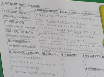キャリア教育の4つの力については、「一人一人の声をしっかりと受け止めること」や「日常の生活をスケジュール化すること」、「今日一日の振り返りをすること」、「働くということは生きる事(生き抜く事)につながり、自己実現にもつながること」などを分かり易く話していただきました。