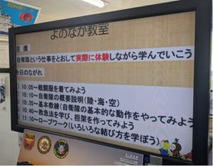 東郷学園若竹分校中学部3年生は、自衛隊宮崎地方協力日向地域事務所様を訪問しました。服装を着用させてもらったり、自衛隊の職務の概要説明、基本的な動作、救急法やロープワークなどを丁寧に説明していただいたようです。