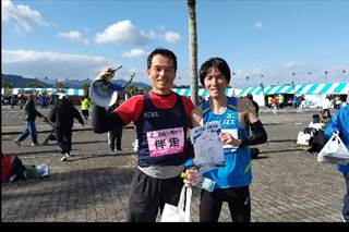 冒頭で紹介しました青島太平洋マラソンは、視覚障害者マラソン大会が同時開催されています。私も以前は「アオタイ」のランナーとして参加しておりましたが、現在は伴走者として参加しています。今年は10kmの部で東京からの若い選手と共に無事ゴールしましたが、そのすぐ後には一般フルマラソンの選手がもう帰ってきました。1位は2時間20分です。何という超人的な速さです。その後惜しくも2位だったのが門川出身で東京都在住の男性です。以前はこの大会で優勝もしていて、学生時代は箱根駅伝にも出場した努力の人です。数十年ぶりに会い話をしました。彼に写真を送ると、早速自身のFacebookで「地方大会の良さ」を語ってくれていました。人と人がFTFface to faceで話をすることで温かな空気感に変わることはよくあることです。昨日も彼の「時の移ろいを感じますね」という言葉からは、時間の経つ早さと思い出の甦りを懐かしく感じましたが、数々の試練を乗り越えてきた彼の人生を思い浮かべてもいました。人が暮らすその場、その地域FTFと顔を付き合わせて暮らしていけるのは、どんなAIにも負けない人間ならではの価値ではないかと思います。先週の研修協議会そしてマラソン大会と、濃い週末でしたが、それぞれの人がそれぞれの地域で生きていくことの大切さを改めて感じました。長い旅の途上である子どもたちを今いる地域で育てるのは先生である大人の役割だと身を引き締めた週明けの朝でした。