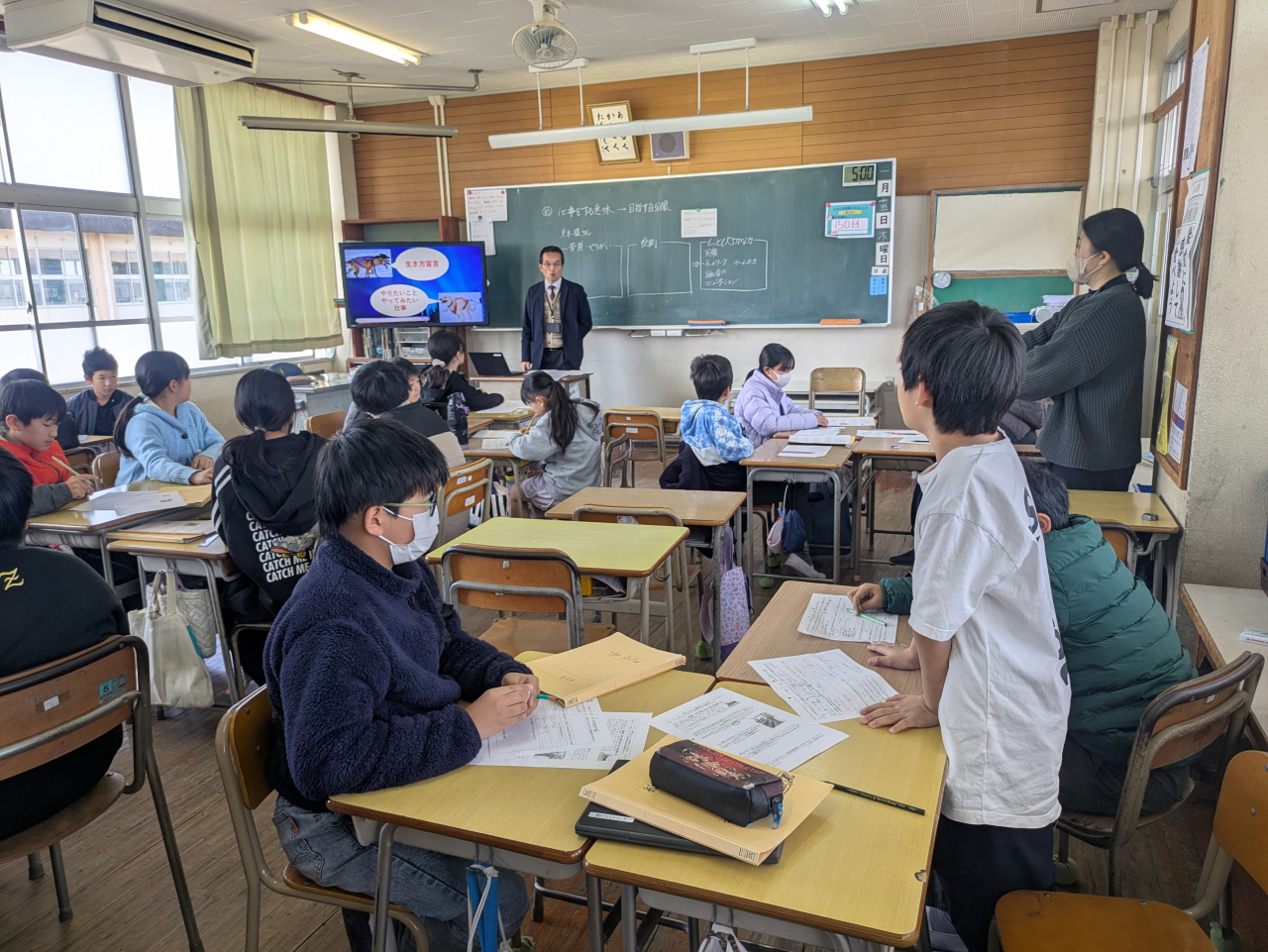 1月15日(木)、財光寺南小学校において5年生(2クラス62名)を対象に「よのなか教室」の事前授業がおこなわれました。