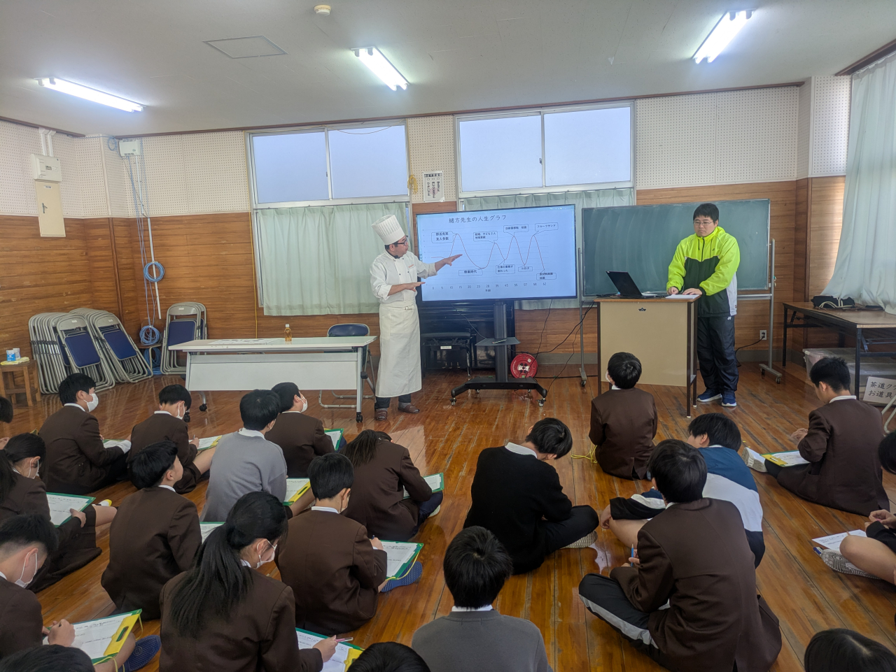 2月2日(月)、富高小学校において、6年生(3クラス68名)を対象に「よのなか教室」が開催され、SEIKADOの緒方康彦さんを「よのなか先生として」お招きしお話しをお聞きました。