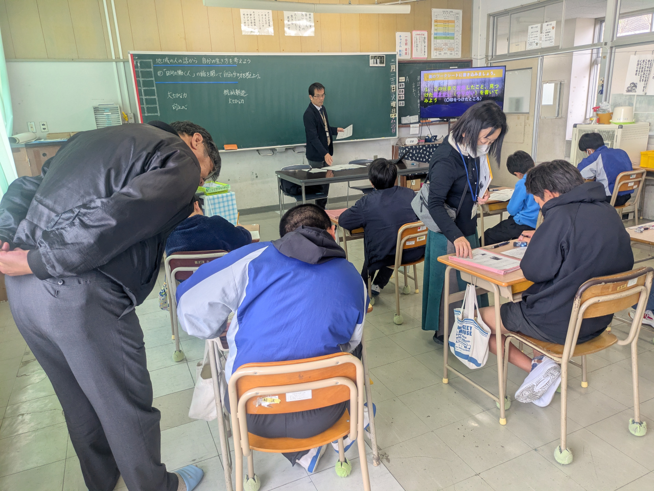 6年生は2月27日(金)に、地域の社会福祉事業所で働かれている方を「よのなか先生」にお迎えし、お話しを聞くことになっています。今回はその事前授業として、ワークシートを使って、仕事に必要な能力などについて読み取る練習をおこなったり、グループで意見を出し合いながらそれぞれの考えを共有し、自分自身の将来や働くことについて考えを深めました。